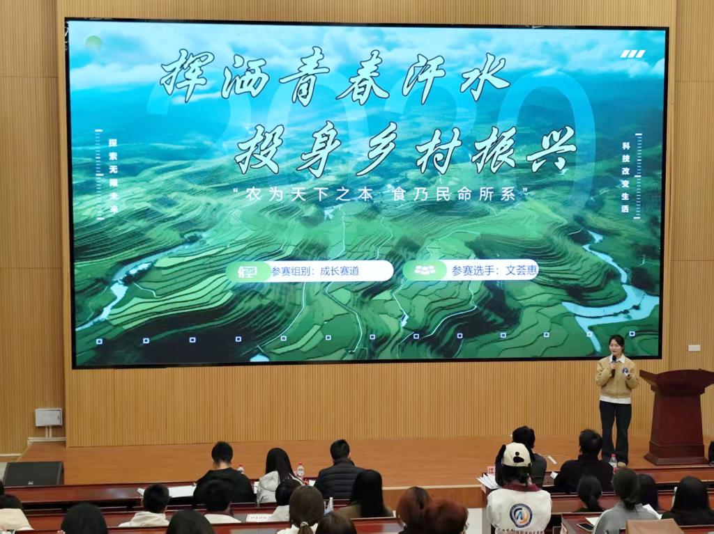 2025年11月26日晚上19:00,第三届全国大学生职业规划大赛人工智能学院院级选拔赛在广西农业工程职业技术学院8号阶梯教室顺利举办。大赛以“筑梦青春志在四方,规划启航职引未来”为主题,吸引了众多学子踊跃参与。