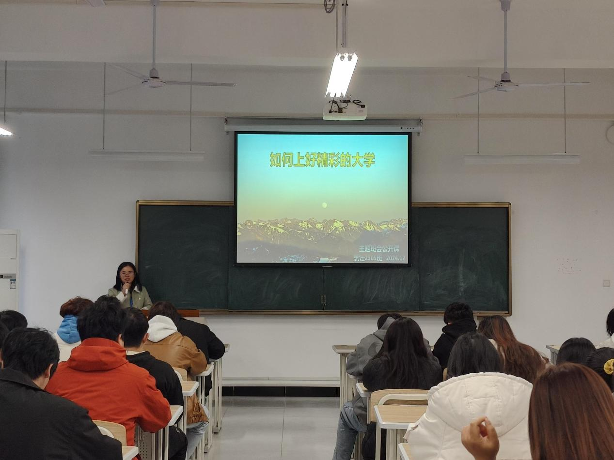 苏菊清老师以《如何上好精彩的大学》为班会主题,通过班情分析、优秀学生分享、自己的经验分享以及分组讨论等方式,与学生们互动探讨,激发学生对未来的思考,帮助学生制定详细的成长计划。