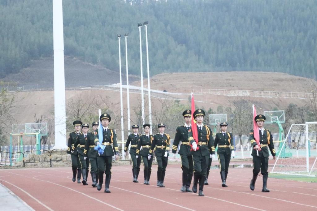 全体学生在升旗仪式上行注目礼