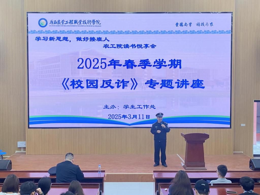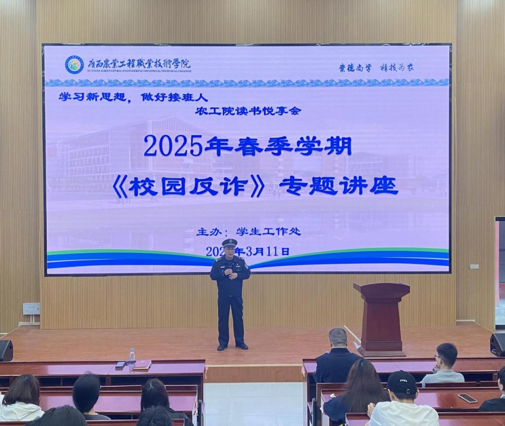 为切实增强学生防范电信网络诈骗意识,提高学生应对诈骗能力,进一步筑牢校园安全防线,2025年3月11日下午,我校学生工作处联合扶绥县公安局开展2025年春季学期校园反诈专题讲座。