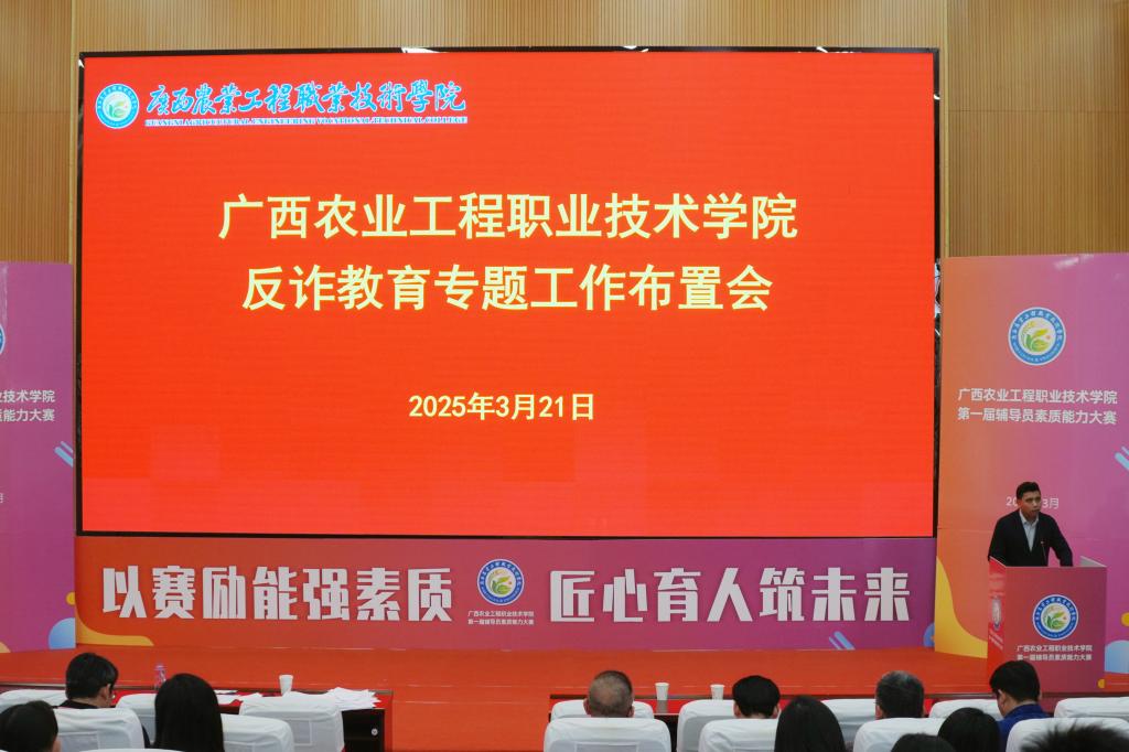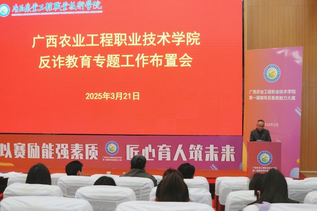 根据上级主管部门工作部署,为了进一步加强校园反诈宣传教育,遏制电信网络诈骗案件的发生,切实保障师生财产安全,3月21日下午,我校在1号阶梯教室召开反诈教育专题工作布置会。会议由学校副校长李祖培主持,各二级学院负责人、全体辅导员及学工处全体人员参加会议。