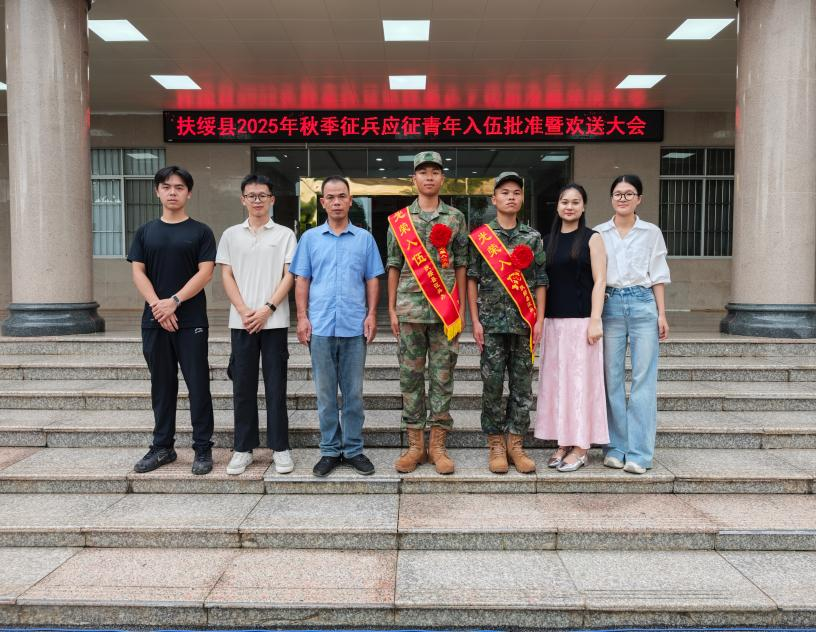 2025年9月17日上午9时30分,扶绥县人民武装部举行2025年秋季征兵新兵入伍批准暨欢送大会。在此次选拔中,经过严格的体检、政审等环节,我校2022级优秀学子方炳权、梁江伟两名同学脱颖而出,光荣应征入伍,即将带着家人和母校的期盼与祝福,奔赴军营书写别样青春。