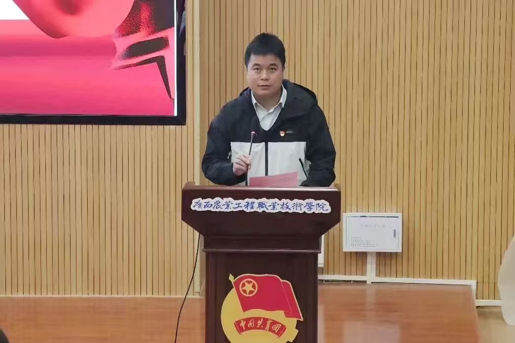 校团委书记覃君勇对本学期新入团的同学给予了热烈祝贺,并提出以下几点期望。第一要坚定理想信念,筑牢思想根基。新团员要在学习中不断增强自身的政治属性,将个人理想融入国家富强和民族振兴的洪流中;第二要砥砺品德修养,引领时代新风。团员是青年先进性和模范性的代表,要自觉维护团的身份,践行社会主义价值观,以自身的言行影响和带动身边更多的同学共同进步;第三要勤奋刻苦学习,练就过硬本领。新团员要珍惜时光,努力学好专业知识,积极参与学科专业竞赛,将理论转化为实践能力;第四要积极参加团组织的各项活动,在志愿服务和社会实践中发挥团员青年突击队和主力军的作用。