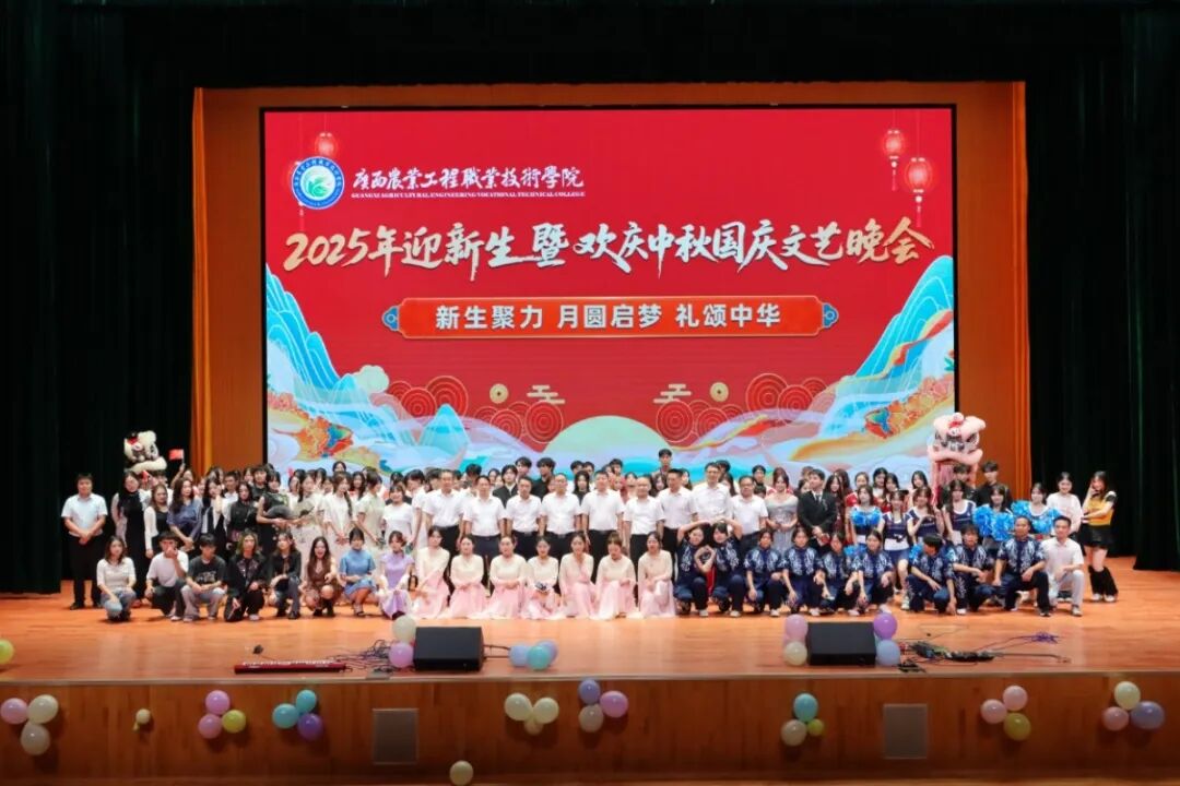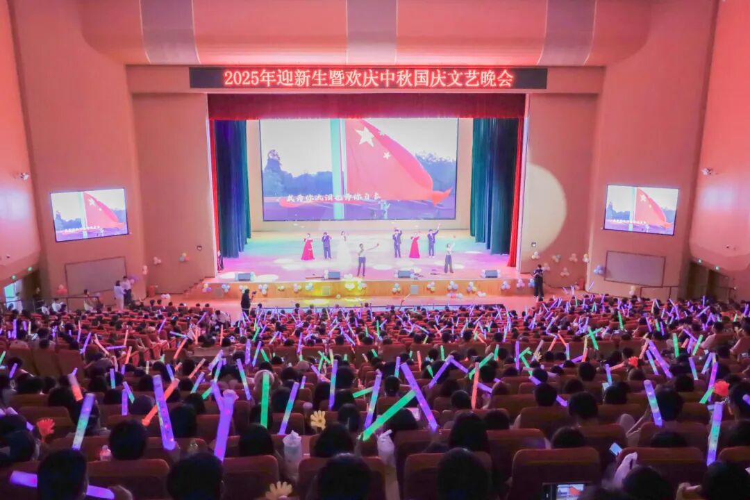 9月29日晚,我校在学术交流中心举行“迎新生暨欢庆中秋国庆”文艺晚会。学校党委书记马敏,副校长李祖培、莫嘉凌,总会计师韦炜出席晚会,与2025级新生及教师代表欢聚一堂,共同观看这场融合青春激情与家国情怀的文艺盛宴。
