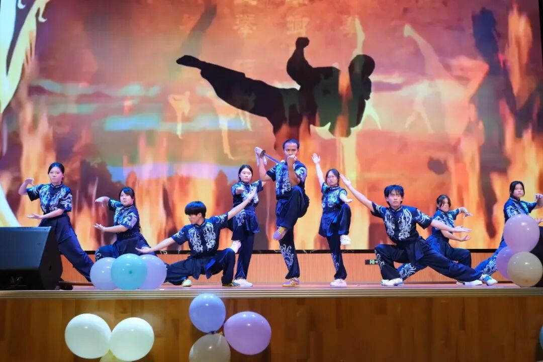 武术表演《武韵中华》刚柔并济,体现了青年学子强健体魄、昂扬向上的精神风貌。