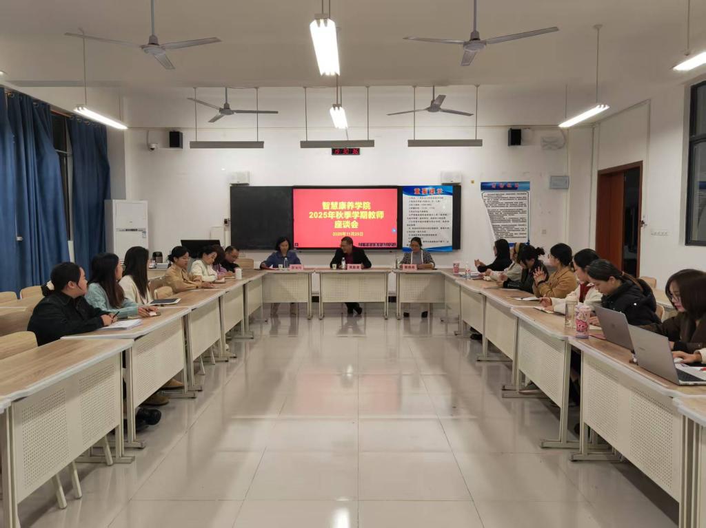 为深入贯彻新时代高等教育高质量发展理念,凝聚教师智慧、共谋学院发展,智慧康养学院于2025年11月25日在3栋教学楼205会议室召开2025年秋季教师座谈会。